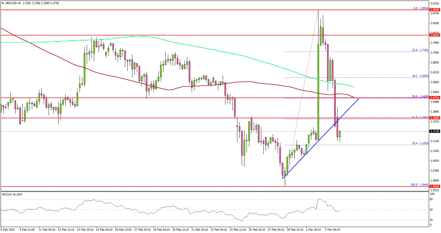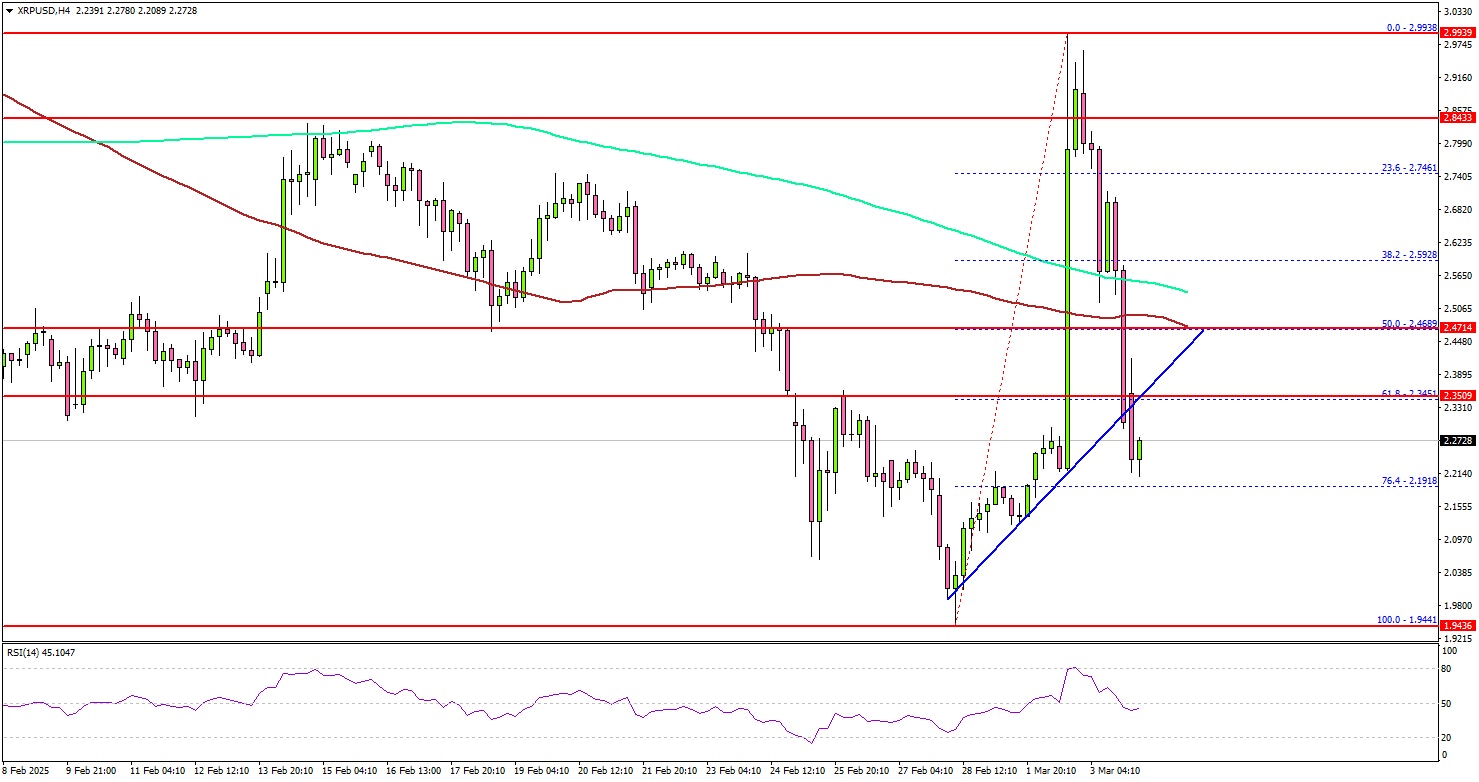 XRP price started a major rally from the $2.20 zone after Trump’s strategic reserves announcement. The bulls pumped the price above the $2.50 and $2.750 resistance levels.