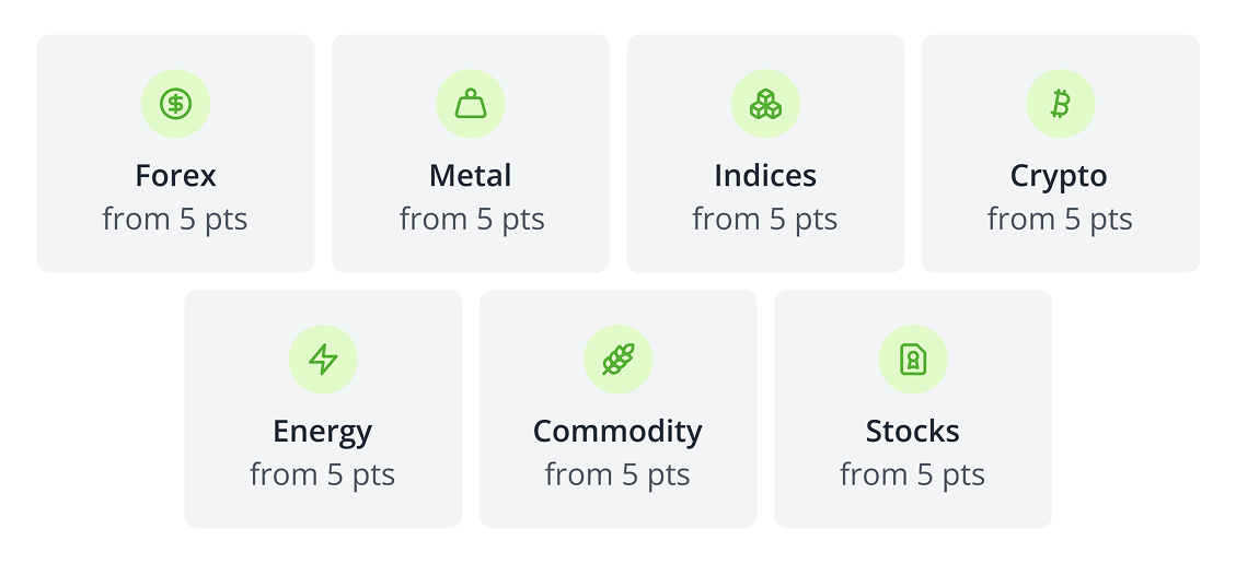 Qualifying activities include: All closed trades across Standard, Blade, and Micro accounts. Trades in any asset class (FX, indices, commodities, crypto, etc.) — though the point rate differs by product.