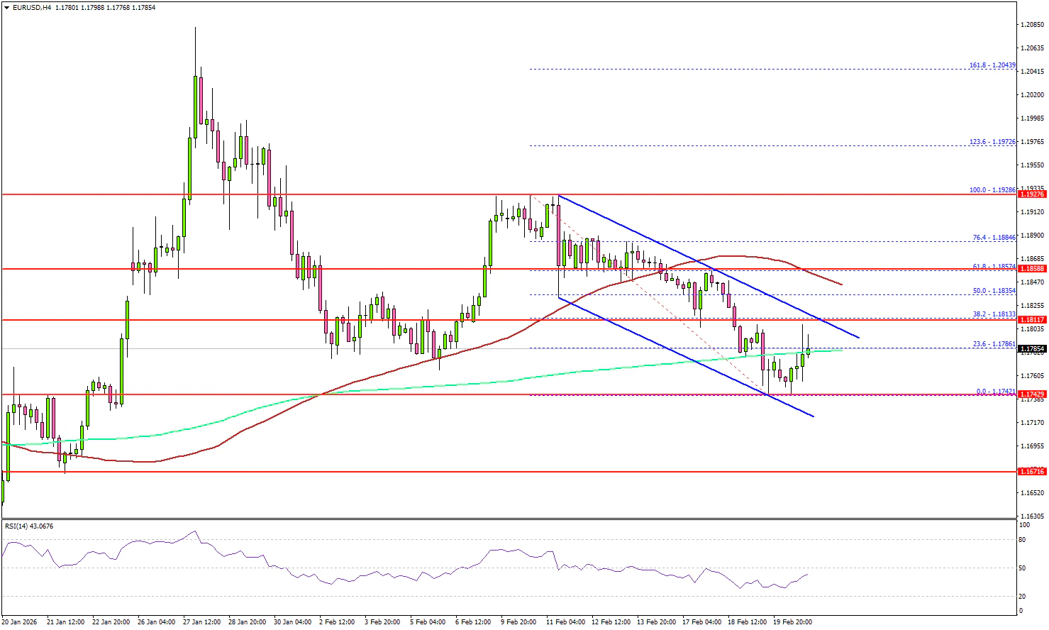 多頭的下一阻力可能在 1.1850 及 100 簡單移動平均線(紅色,4 小時)。若收盤站上 1.1850,上漲空間可能進一步打開。在此情況下,多頭可能瞄準 1.1900。主要阻力位在 1.1925 附近。