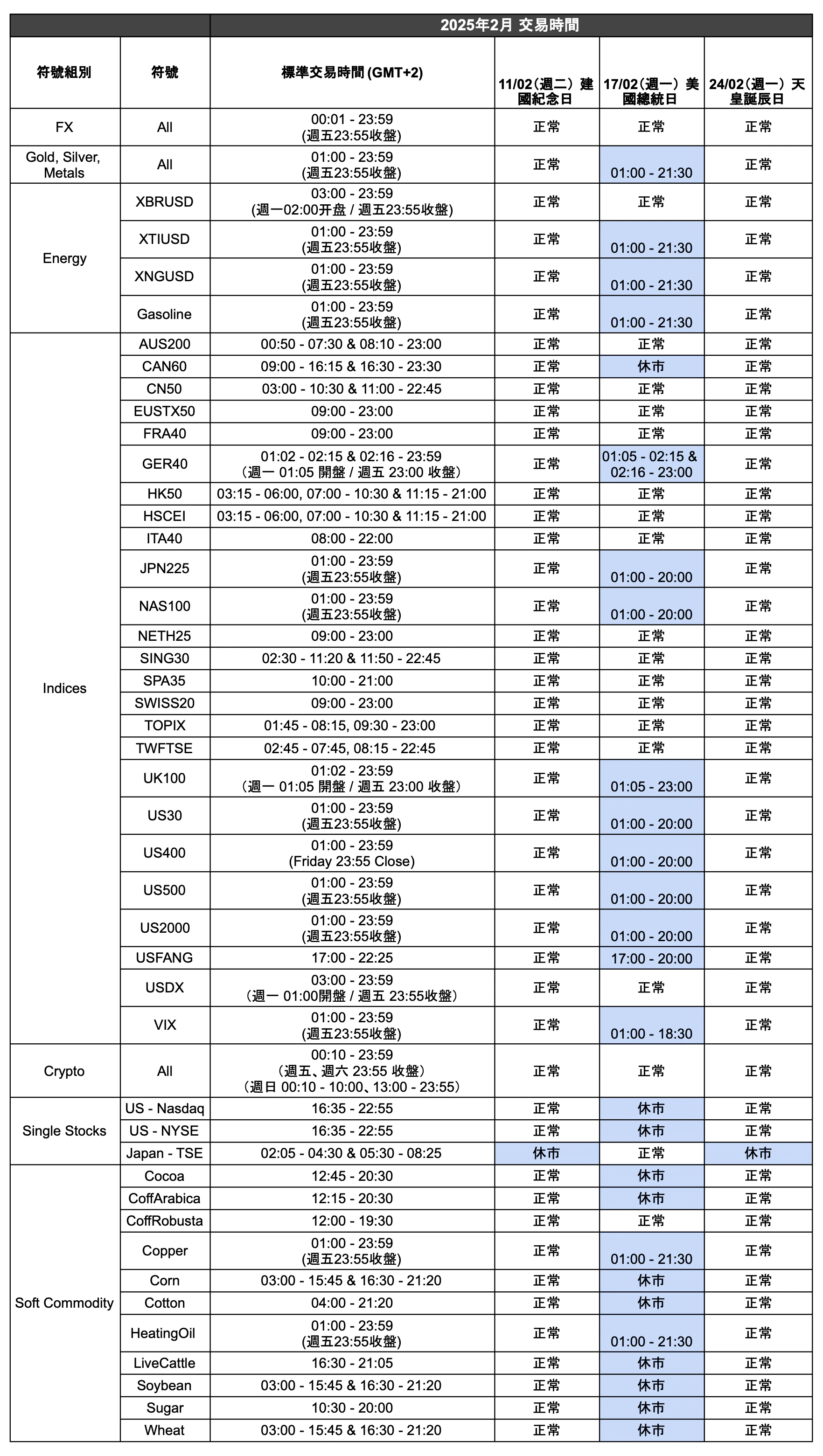 Titan FX Team 31st January 2025 由於美國和日本即將迎來的假期,部分產品的交易時間將有所調整。請參閱下表以了解所有這些變更的詳細信息,並合理規劃您的交易安排。請點擊圖片以放大查看。除上述所提及的情況外,市場將照常開放。