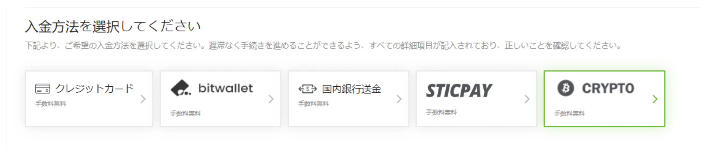ご存じでしたか?口座登録のご本人様確認が完了したお客様は、ビットコイン(BTC)、ライトコイン(LTC)、イーサリアム(ETH)、テザー(USDT) を始めとした、人気の各種仮想通貨でご入金ができます。