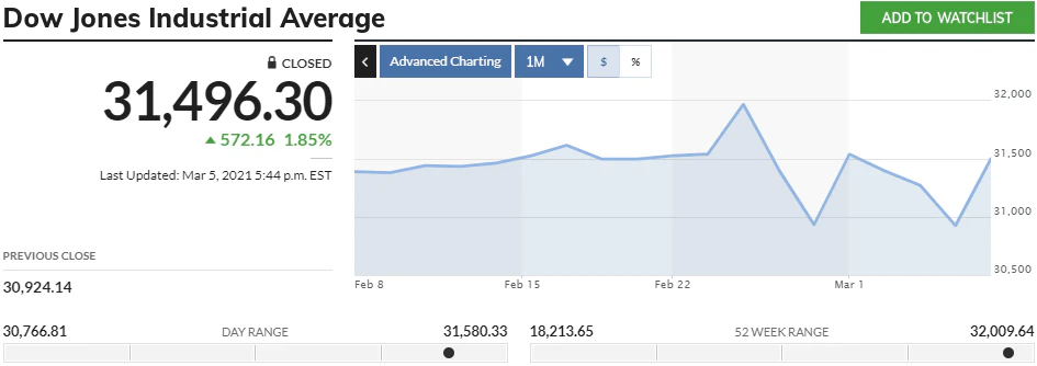 3月第1週の米国市場は最高値からは10%の下落と軟調相場で推移しているが、週末の米国市場は前日比+572.16ドルと反発する形で3月第1週を終える展開となった。