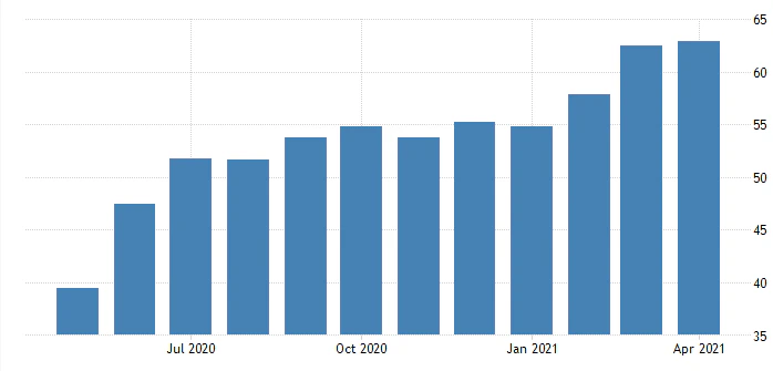 4月のEUPMI値も市場予想を上回り、3か月連続で数値が改善するなど経済相が好調に推移すること、7月までに人口の7割にワクチン接種を行うなど、景気回復とコロナ対策による経済回復の兆しが合わさることで市場は上昇基調となりそうだ。