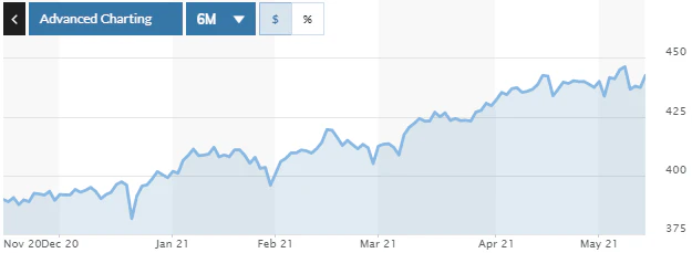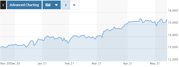 ユーロ円小売売上高が堅調な推移を続け、消費者信頼感指数も上昇を示したこと、3月にEU圏で広まったコロナウイルス感染症の第3波の影響もワクチン接種による感染者数の減少が続いており欧州市場は上昇傾向にある。