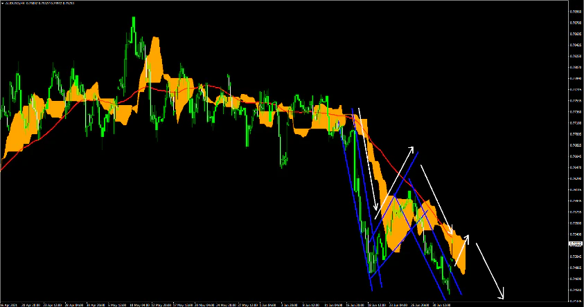 AUDUSDの1時間足はジグザグの形を描きながらの下降となっている。日足でも下降に入った事から1時間足でも大きな流れでは下降に入ると思われる。