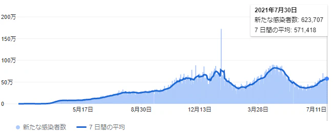 米国市場にとっての懸念材料はコロナ感染者数の増加と死者数の増加がどの程度の水準となるのか、WHOより注意すべき変異株に指定されたラムダ株が米国で猛威を振るう日が来るのかであり、米国でラムダ株の感染が拡大するようなことがあれば、市場は再び大きく振れる展開となる可能性もある。