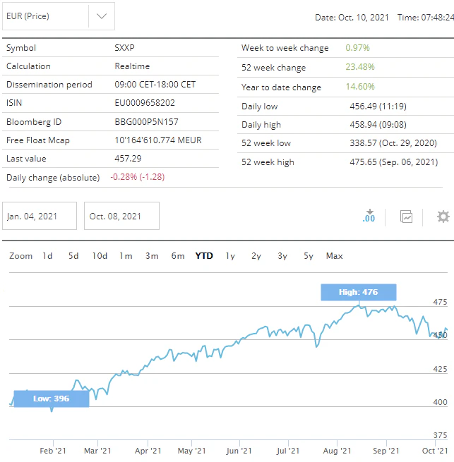 欧州市場では企業業績改善の勢いが弱りつつある事がストック欧州600指数の1年予想EPSが8月下旬より下降傾向になった事、中国問題を半導体供給不足の懸念なども浮上した事で市場は下降へと転じつつある。