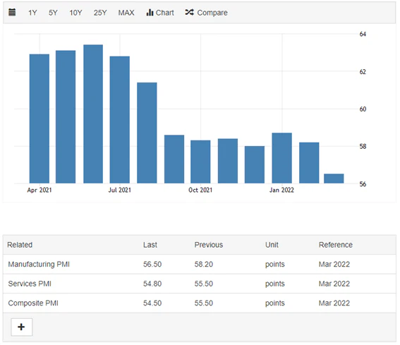 ISMの3月製造業景況指数は57.1と先月より低下しており、供給網が引き続き逼迫している事を示しているものの、市場としては悪材料とはなり得ず、FRBによる早期の利上げの可能性が上値をさえているようだ。