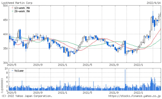 (ロッキードマーティン株価推移)
