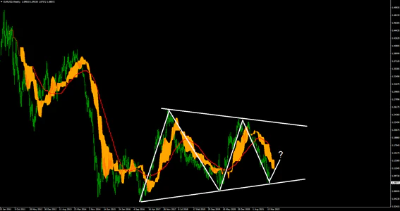 EUR/USDの週足では三角持ち合い、レンジに近い形となっている。