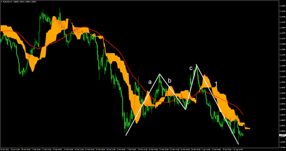 EURUSD4時間足上では調整波のa-c波が終わり、再度の推進派の1波が発生している。