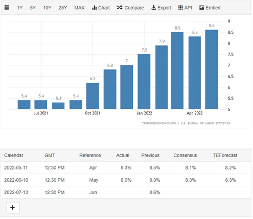 RDM フィナンシャル・グループの最高投資責任者(CIO)、マイケル・シェルドン氏は「5月のインフレ率は予想以上に上昇し、物価高が予想より長く続くことを思い知らされた」と指摘。「FRBはインフレ抑制に向けあらゆる手段を講じる」との見方を示している。