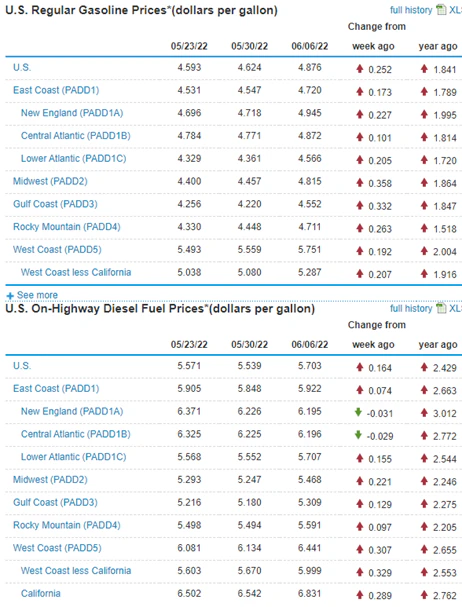 米ガソリン価格(https://www.eia.gov/より)