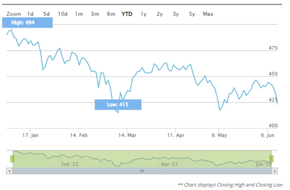 6月2週の米国市場は労務省が発表した5月消費者物価指数が前年同月比で8.6%の上昇と米国市場はインフレ率が8.6%の上昇と1981年12月以来40年ぶりの大幅な上昇率となった事、ガソリン価格が過去最高となり、サービス価格も上昇するなどしたことで、2年利回高値水準となり市場を押し下げる展開となった。