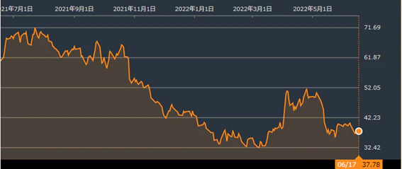 6月3週の米国市場は小幅に値を上げる形で週を終えたが、週間で見るとはダウ工業30種が4.79%の下落、S&P500が5.79%、ナスダック総合が4.78%とそれぞれ大きく値を下げる展開と下げ幅は2020年3月以来では最大の下落幅となっている。