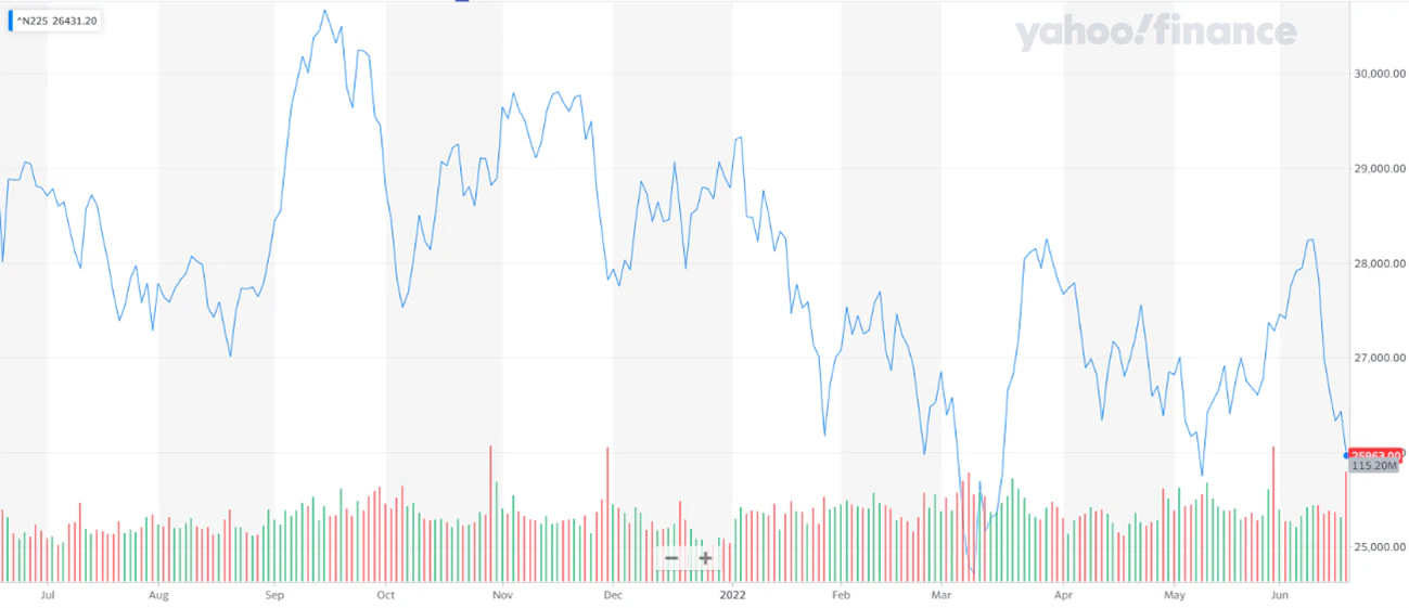 米国市場はFRBが75bpの利上げを決定した事で波乱の展開となったが、7月も75bpの利上げを検討していると示唆した事から、経済状況の悪化ハト派タカ派間での調整など様々な要因で急速な利上げの可能性もまだ存在しており利上げと景気後退のリスクと神経質な展開となりそうだ。