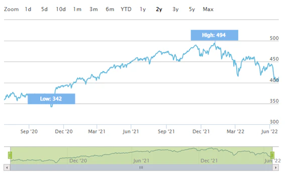 (STOXX Europe 600 idex 2年推移)