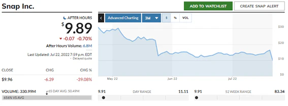 22日の米国市場は好決算となったアメリカン・エキスプレスが市場をけん引する形となっていたが、写真・動画共有アプリ「スナップチャット」の運営を行う米スナップの決算が市場予想を下回る形となり、暴落。