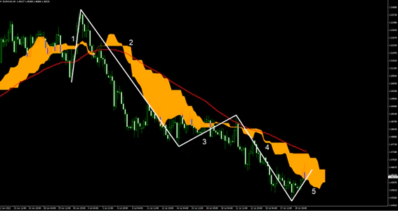 推進波の初動をどこにするのかで1波分のずれが生じてしまい、5波の形成が4波の形成となる場合もチャートからよみとることもできるが、ここでは5波の形成として話を進めたい。