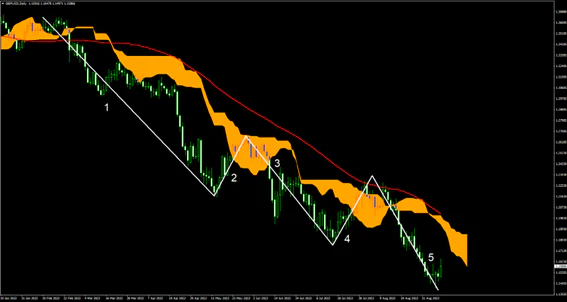 GBP/USDの日足では波動論上の5波までの形成がなされた可能性が見て取れる。