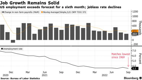 7日の米国市場で発表された米国雇用統計は非農業部門雇用者数が26.3万人の増加と8月の31.5万人増から鈍化したものの、市場予想の25万人増を上回ったことがFRBによる利上げ継続・積極利上げの憶測を呼ぶ形となった模様だ。