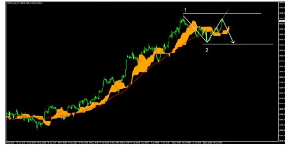ナスダック100の4時間足で見た場合、2つのシナリオが用意されている。