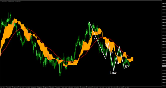 AUD/CAD4時間足ではエリオット波動論上の5波?の可能性が現在出ている。