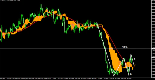 c波の形成で図中の50%まで値を上げる可能性があり、a波とb波で形成された高値をどのタイミングで抜けてくるのかが重要となりそうだ。