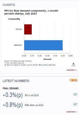 労働省が11日発表した7月の卸売物価指数(PPI)は前月比で0.3%上昇、前年比では0.8%上昇となった。エコノミストの予想は、前月比0.2%上昇、前年比0.7%上昇であり、予想よりも物価は下がっていない。