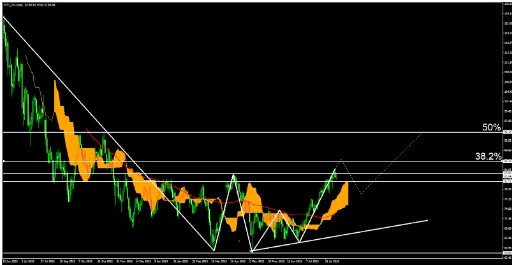 4時間足では上昇基調が続いている事から1つ上の足で数か月~スケールでの予想を行う。