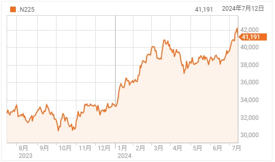 日本市場は6月24日から7月11日にかけて38,804円から42,224円と、3,000円超の上昇となっていたが、7月12日の1,033円安で調整入りとなっている。