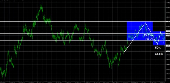 再度下抜けとなった場合、61.8%が意識されることとなり、61.8%部分でもう1つレンジに近いもの、下げ・上げ・戻りといった形と形成する事になりそうだ。