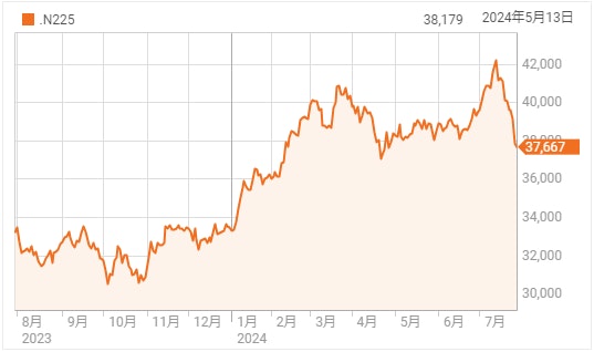 26日は37,667円と7月11日の最高値42,333円から4,600円超の下げと凄まじい下落となっている。