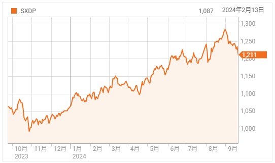 (STOXX欧州600種ヘルスケア株指数推移)