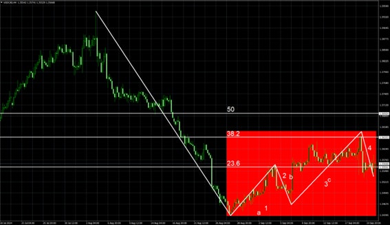 まず、USD/CADの4時間足で注意したいのは、波動論での推進波1-4であるのか、調整波a-cであるのかの判断が付きにくい部分がある。