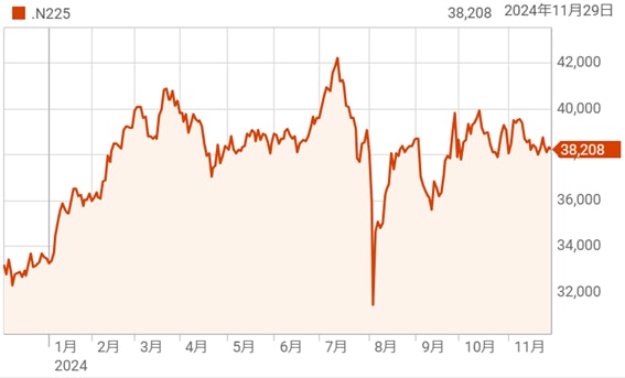 日本市場は日経平均38,208.03円と苦しい状況が続いている。