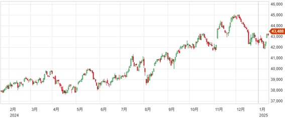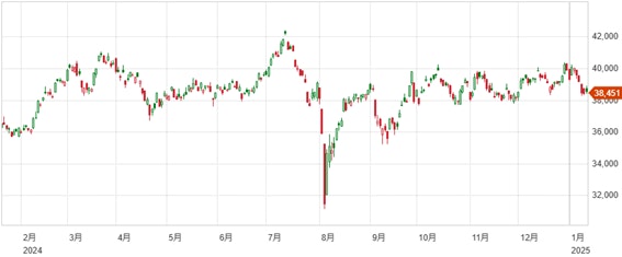 日本市場は1月7日の高値40083.30円から1631.84円の下落となっており、25年の滑り出しは散々なものとなっている。