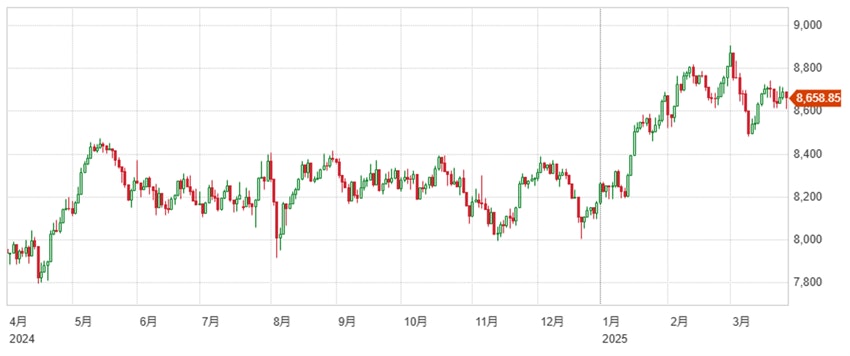4月3日に予定されている相互関税の発動を控える中で発表された2月個人消費支出、物価指数は前年比で2.5%の上昇となり予想を下回る形となった。