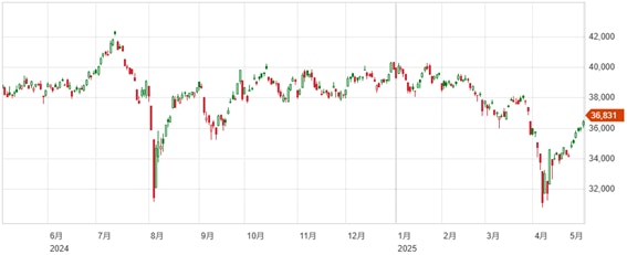 トランプショック前の水準にまであとわずかと、トランプ政権による一連の下落からほぼ回復となっており、思いのほか底堅い日本市場6月~の25年度後半に向けた幸先の良い流れを起こせるのか?期待の出来る展開となっている。