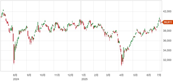 日経平均4万円台での安定的な推移とは行かず、4万円を前にして足踏み状態となっている。