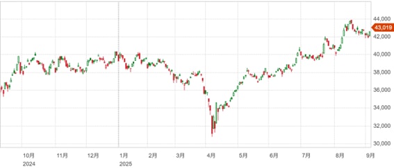 日本市場は43,018.75円で週を終えており、週間では+656.04円となっている。