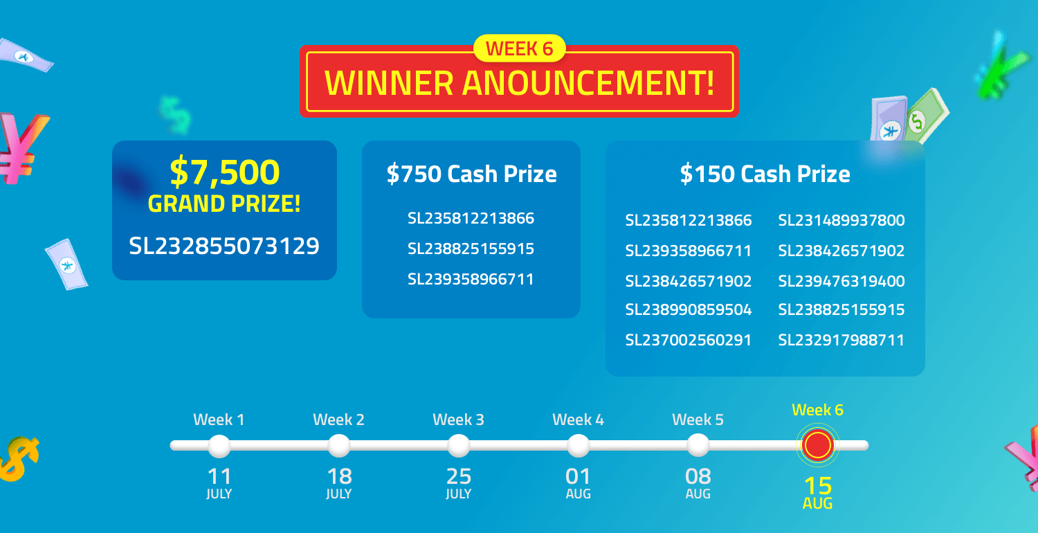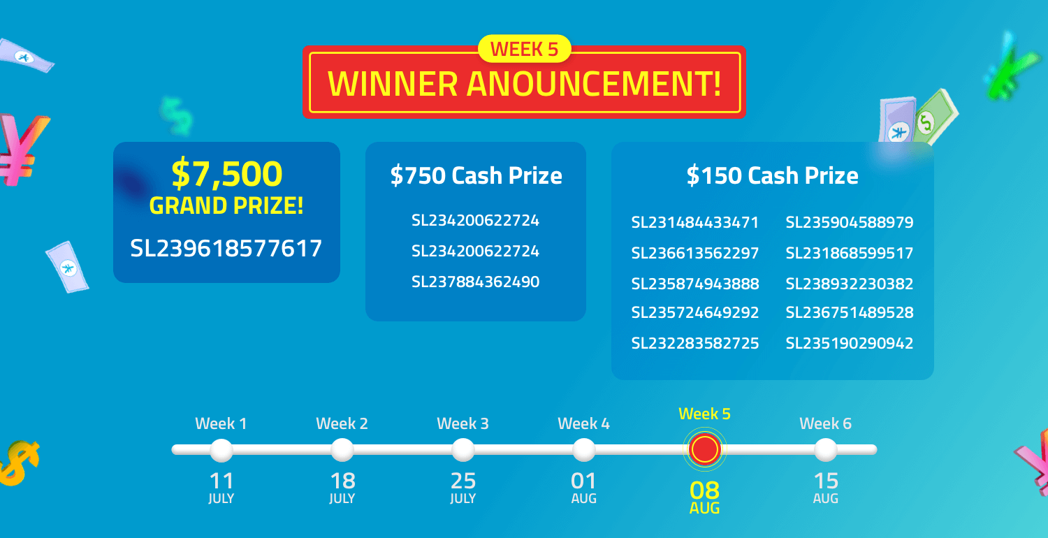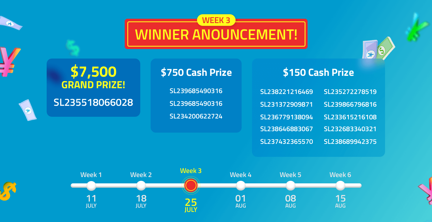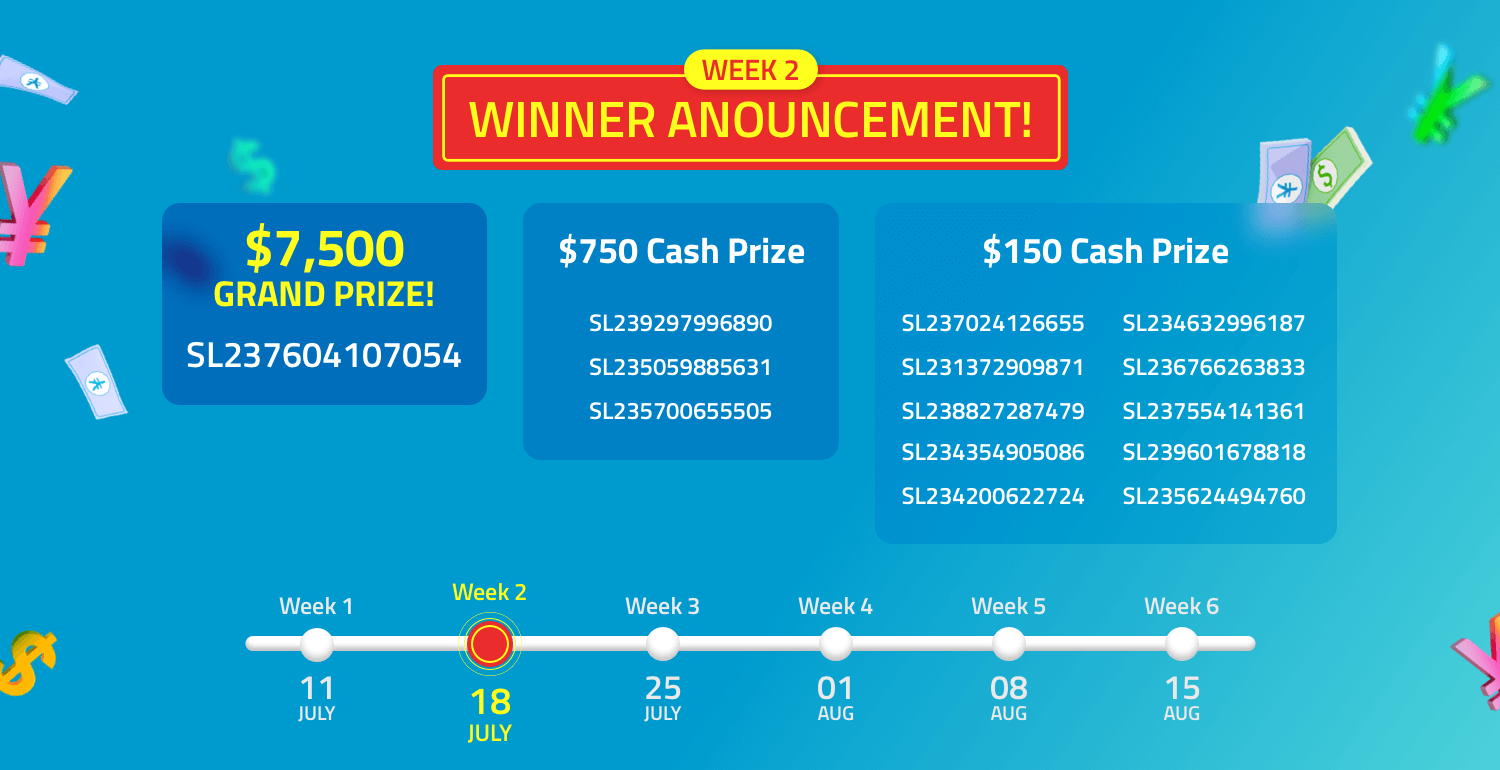 | Campaign Benefits | Each week, winning tickets will be chosen at random from the pool of participating tickets, offering you the chance to win one (or more) of the 14 weekly cash prizes: